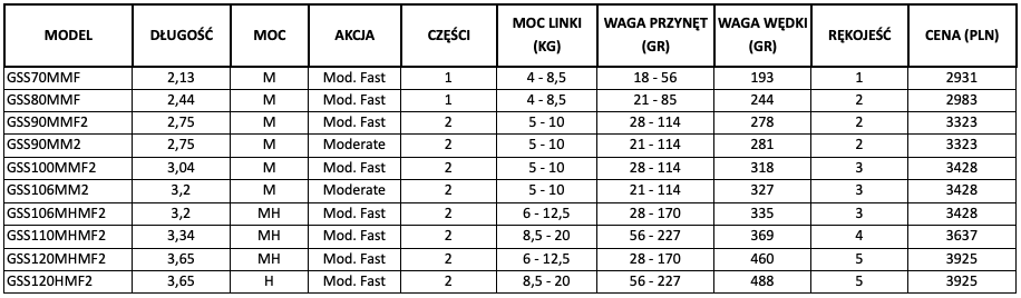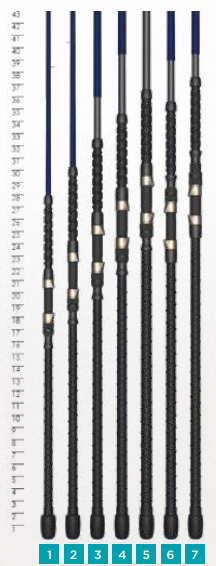W modelach 2-częściowych złącze przesunięte w kierunku rękojeści dla uzyskania efektu wędki jednoczęściowej